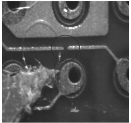 图5 曝光机内垃圾导致的线条断线