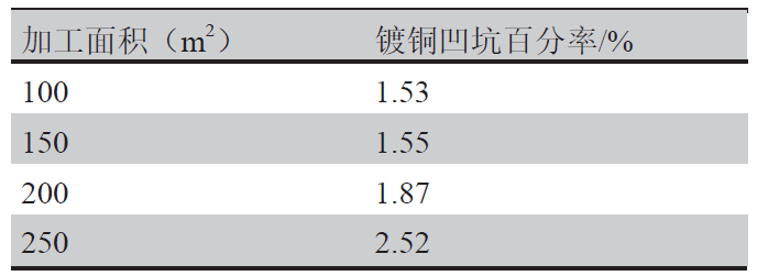 8458cc万彩网 表1 显影液加工面积对镀铜凹坑的影响