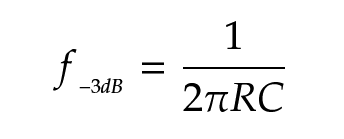 您必须记住,如果您选择的RC滤波器电阻与信号驱动器的输出电阻大约处于相同的欧姆水平,那么在计算-3dB截止频率时也必须考虑到输出电阻。RC滤波器的计算公式为: