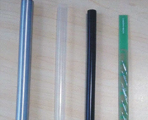 传感器结构如图2所示,由左至右依次为套管、塑料管、环氧树脂、PCB 板。PCB板装入塑料管后再装入套管,塑料管中先灌入密封胶,固定住PCB板后再灌入环氧树脂,树脂固化后保护和密封PCB板。环氧树脂在灌装时为流体,固化后坚硬,这也使得故障件难以完整拆解。