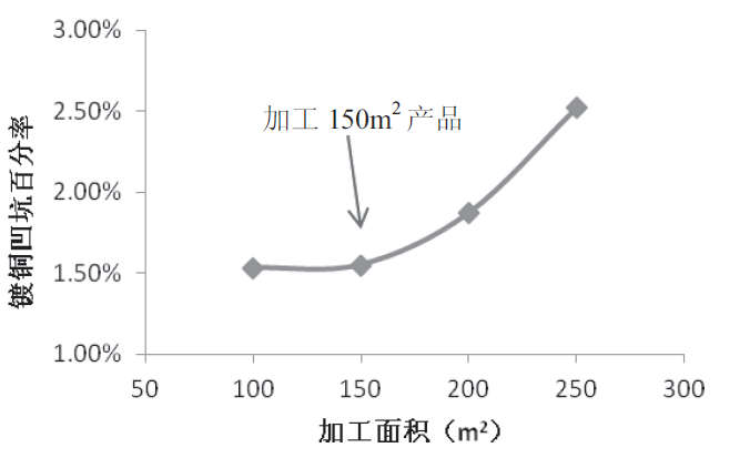 8458cc万彩网 图6 加工面积与镀铜凹坑百分率趋势图